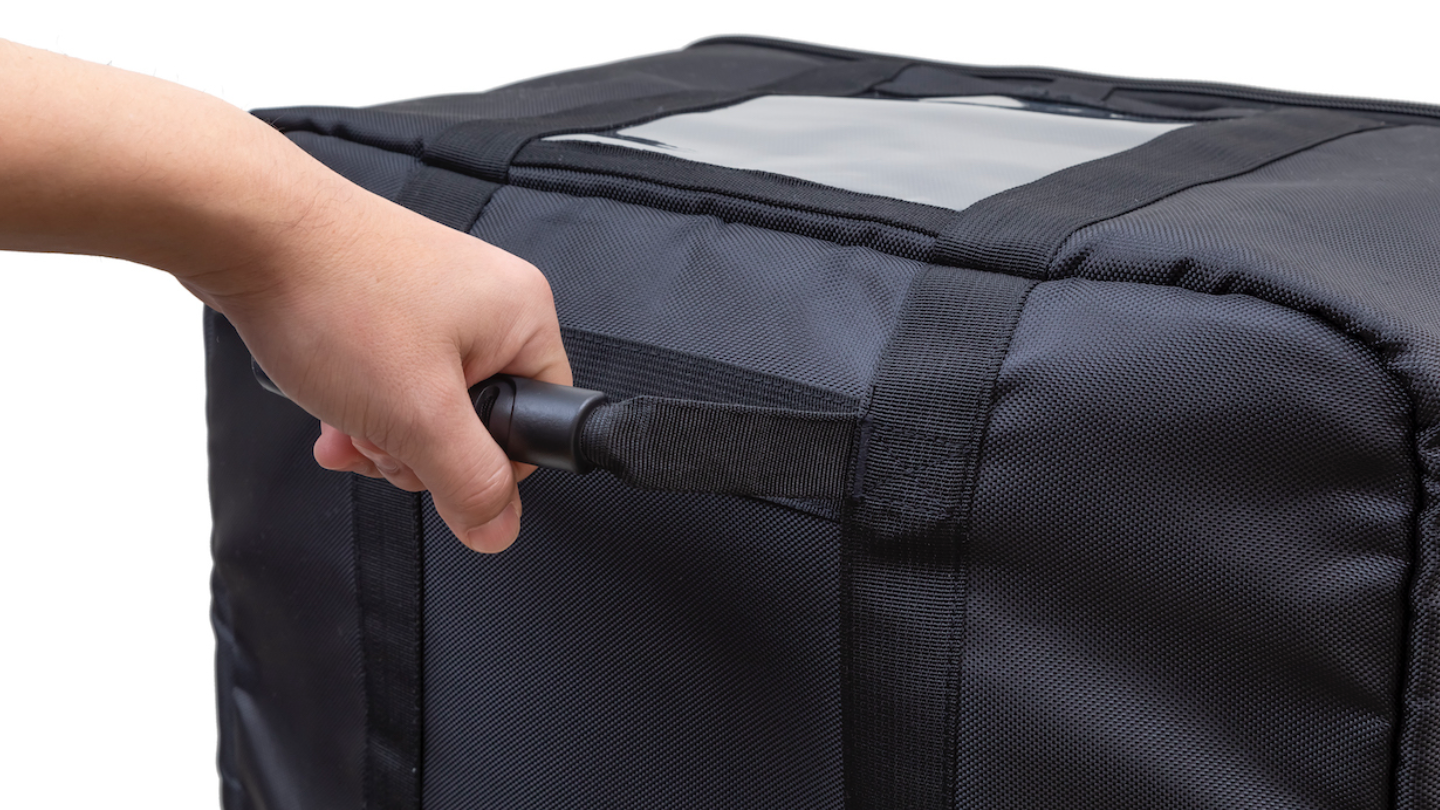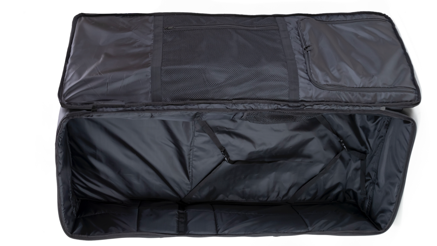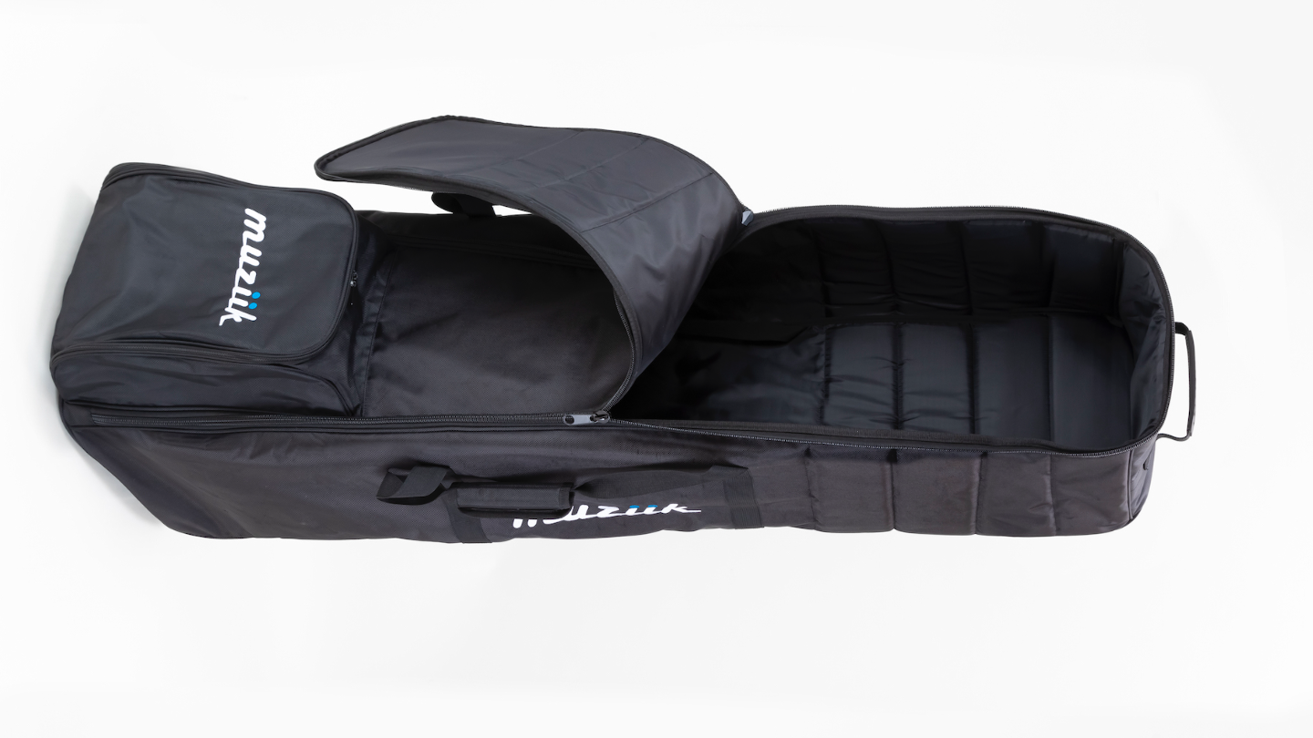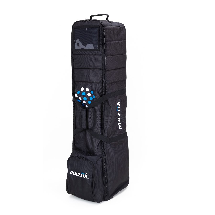 A travel cover that can be completely covered over Musique's 48-inch compatible caddie bags.