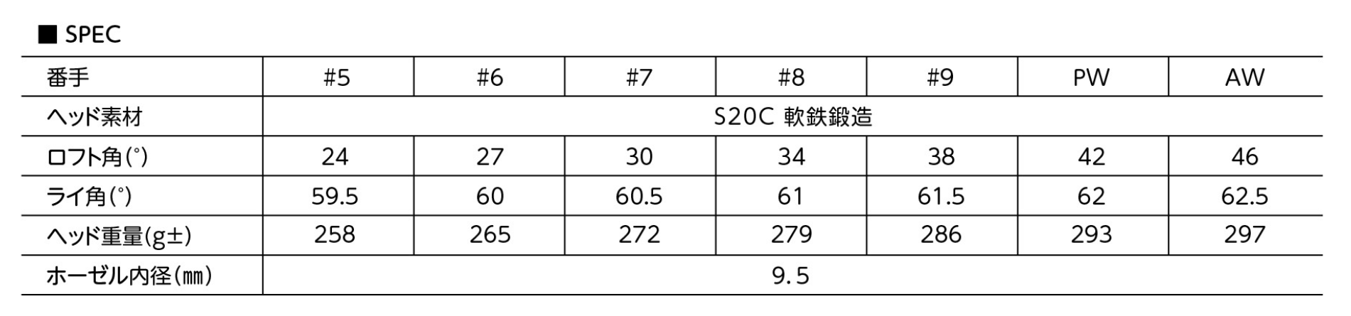 Each S20C steel head is carefully forged to ensure superb feel and control. With precisely-calibrated lofts (e.g. 30° for the 7-iron and 42° for the pitching wedge), golfers can take dead aim for the pin especially with the short irons.